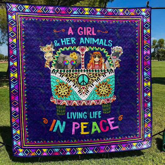 A Girl And Her Animal Living Life In Peace Art Quilt TL060701Y