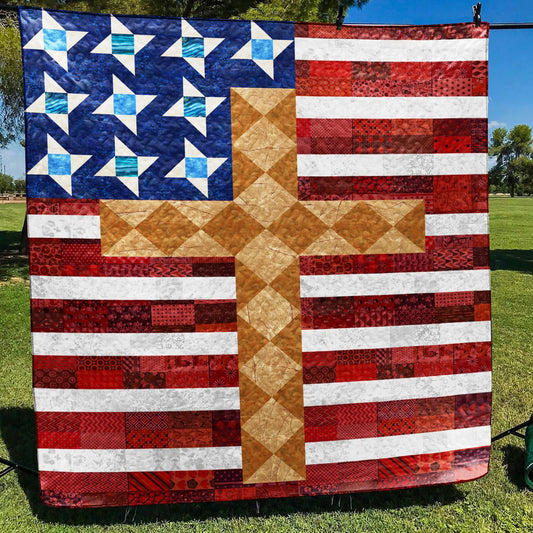 Patriotic American Christian Cross Quilt Blanket TL070601Y