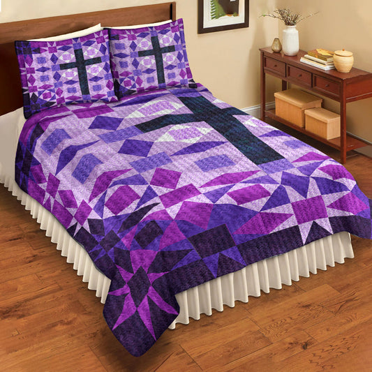 Purple Christian Cross Quilt Bedding Set TL100605QS