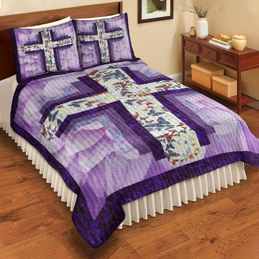 Christian Cross Butterfly Quilt Bedding Set TL100603QS