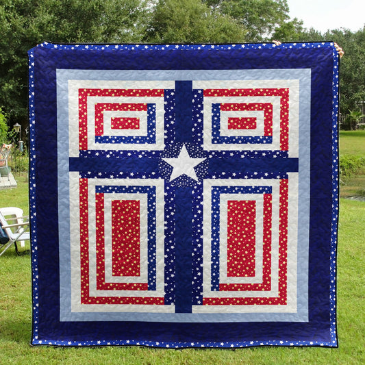 Christian Cross Patriotic Quilt Blanket HN090603M