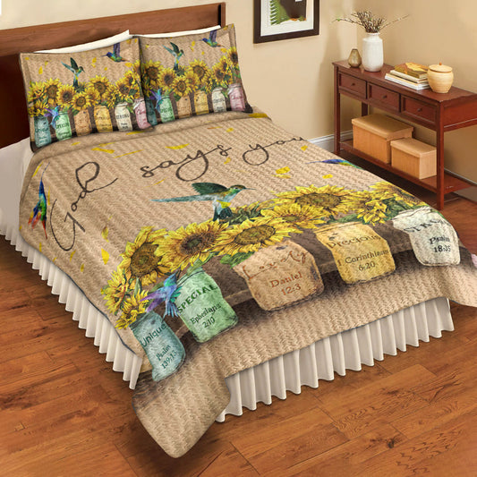 God Says You Are Sunflower Hummingbird Quilt Bedding Set TL020602QS
