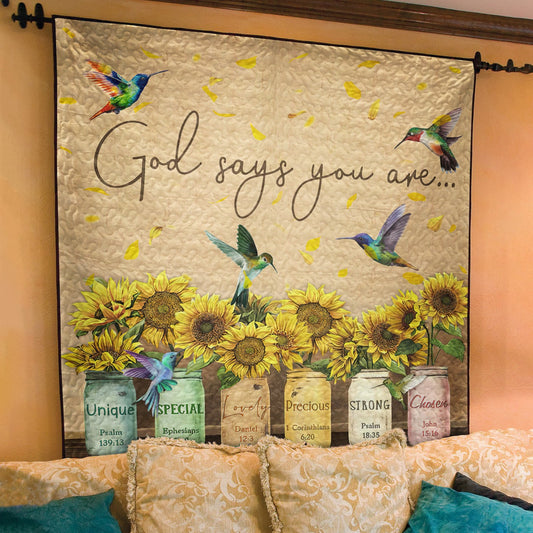 God Says You Are Sunflower Hummingbird Quilt Blanket TL020602Y