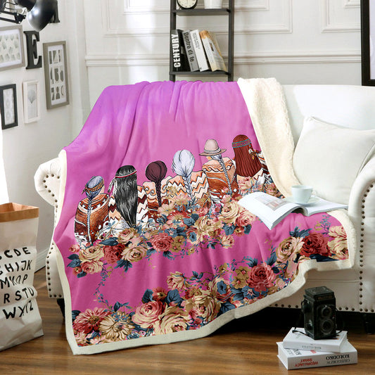 Native American Inspired Sherpa Fleece Blanket HT121008