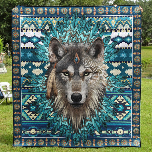 Native American Inspired Flowers Wolf Art Quilt MT190502M