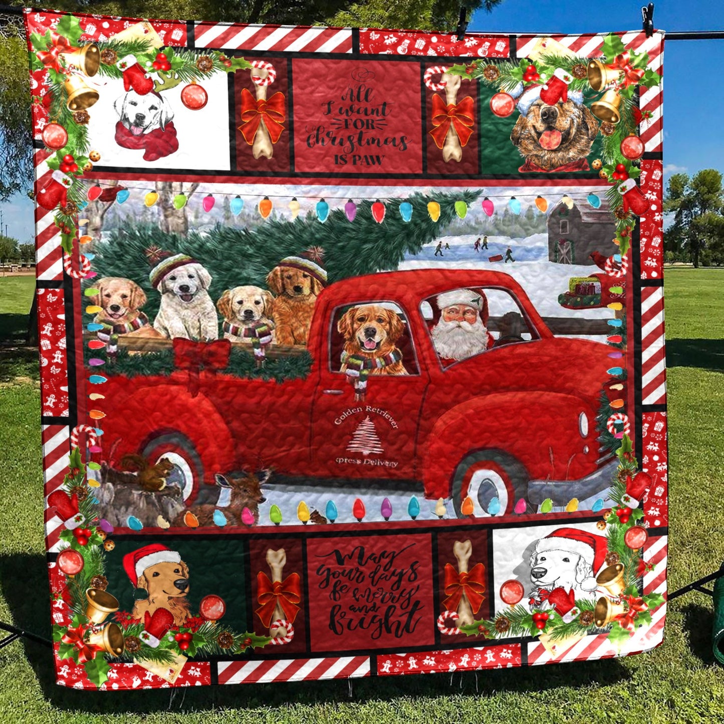 Golden Retriever Christmas CL15100192MDQ Quilt Blanket